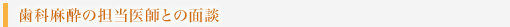 歯科麻酔の先生との面談です。手術に対する不安や緊張を和らげ、できるかぎり患者様がいい状態で手術に臨めるようお手伝いをします。